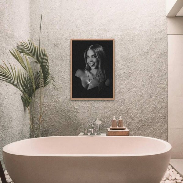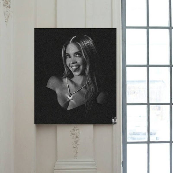 "Miss Glance" Black and white portrait features a captivating smile paired with bold expression, making it a statement piece for any room. Perfect for those who appreciate edgy aesthetics, this canvas brings a unique vibe to your space. Printed with high-quality detail, this piece combines personality with modern style.