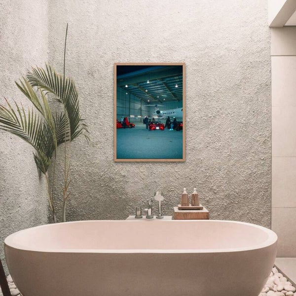 "the hanger" this photo shows the welth of the 1% the dream of so many people this is a Manifestation piece,perfect for your space. Made with premium quality canvass.